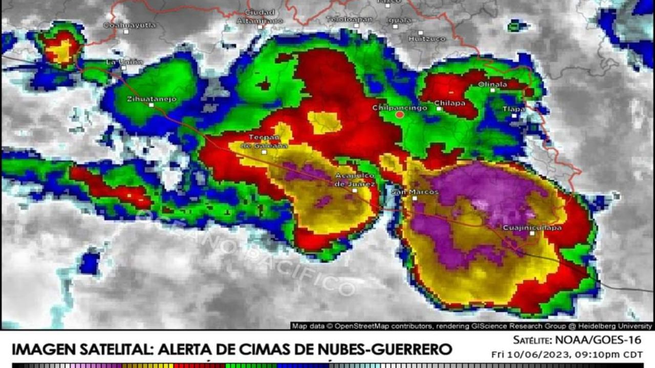 Región Tierra Caliente: Se registrará cielo nublado con probabilidad de ocurrencia de lluvias fuertes. Viento de dirección variable de 5 a 10 km/h. Temperaturas mínimas de 18 a 20 °C.