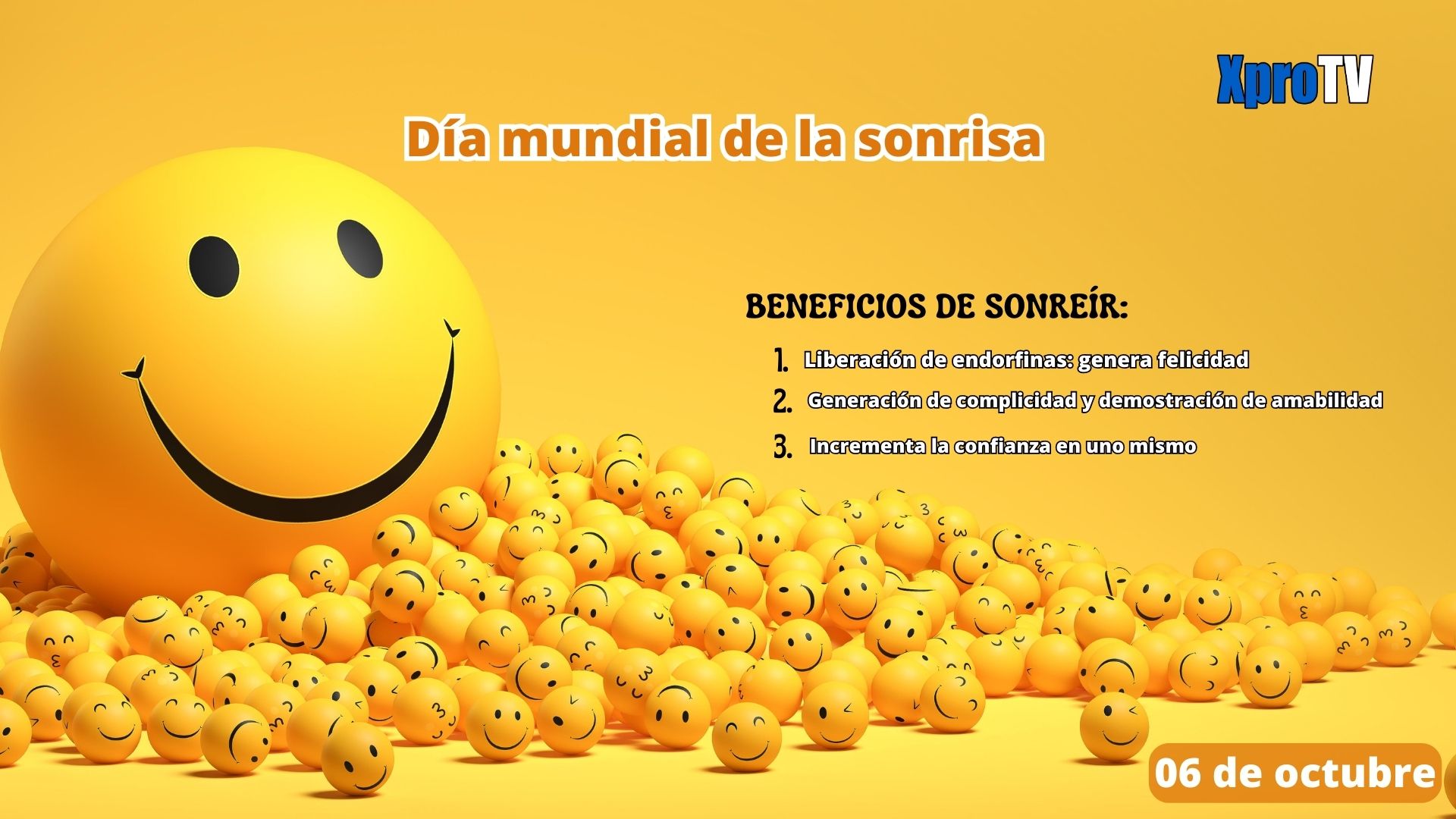 El primer viernes de octubre, es cuando se conmemora el día internacional de la sonrisa. Este día, está ligado a Harvey Ball, quien fue el diseñador de la famosa carita feliz, que actualmente se hace muy presente en el emoticon o emoji que se usa en redes sociales.