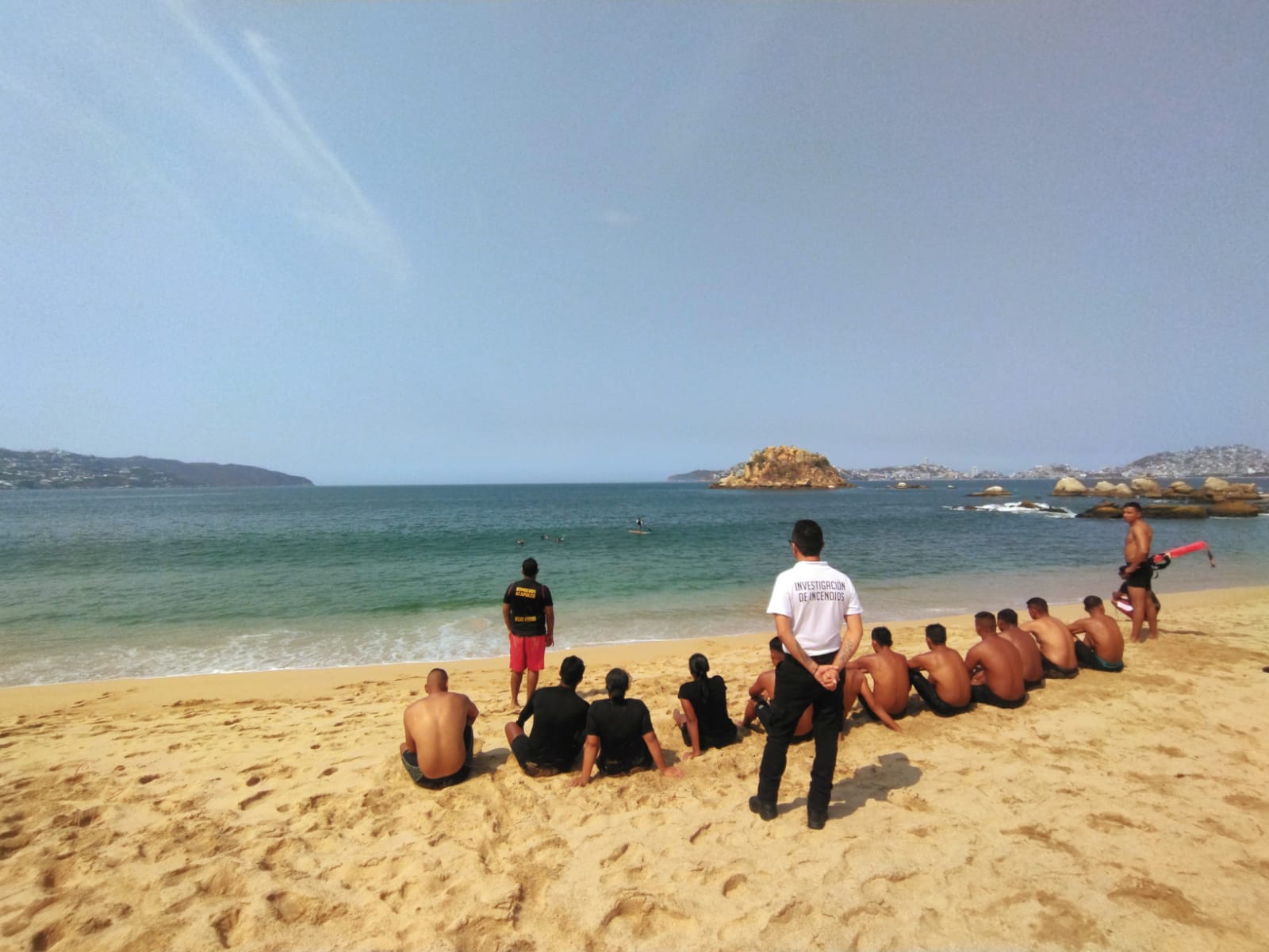 Este viernes fue el último día de capacitación, los elementos realizaron prácticas de rescate acuático en aguas abiertas, donde el proceso de evaluación consistió en nado de resistencia, ida y vuelta al Islote "El Morro", con un tiempo de 13 minutos y nado de resistencia de rescate con víctima, para verificar su comportamiento y velocidad de respuesta ante una emergencia.