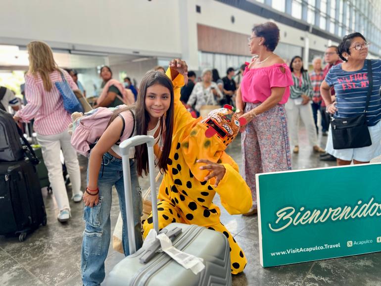 Representantes de la Secretaría de Turismo de Guerrero y el Fideicomiso para la Promoción Turística de Acapulco recibieron con danzas folclóricas típicas del estado y con souvenirs a los turistas que arribaron en este vuelo que tendrá dos frecuencias a la semana.