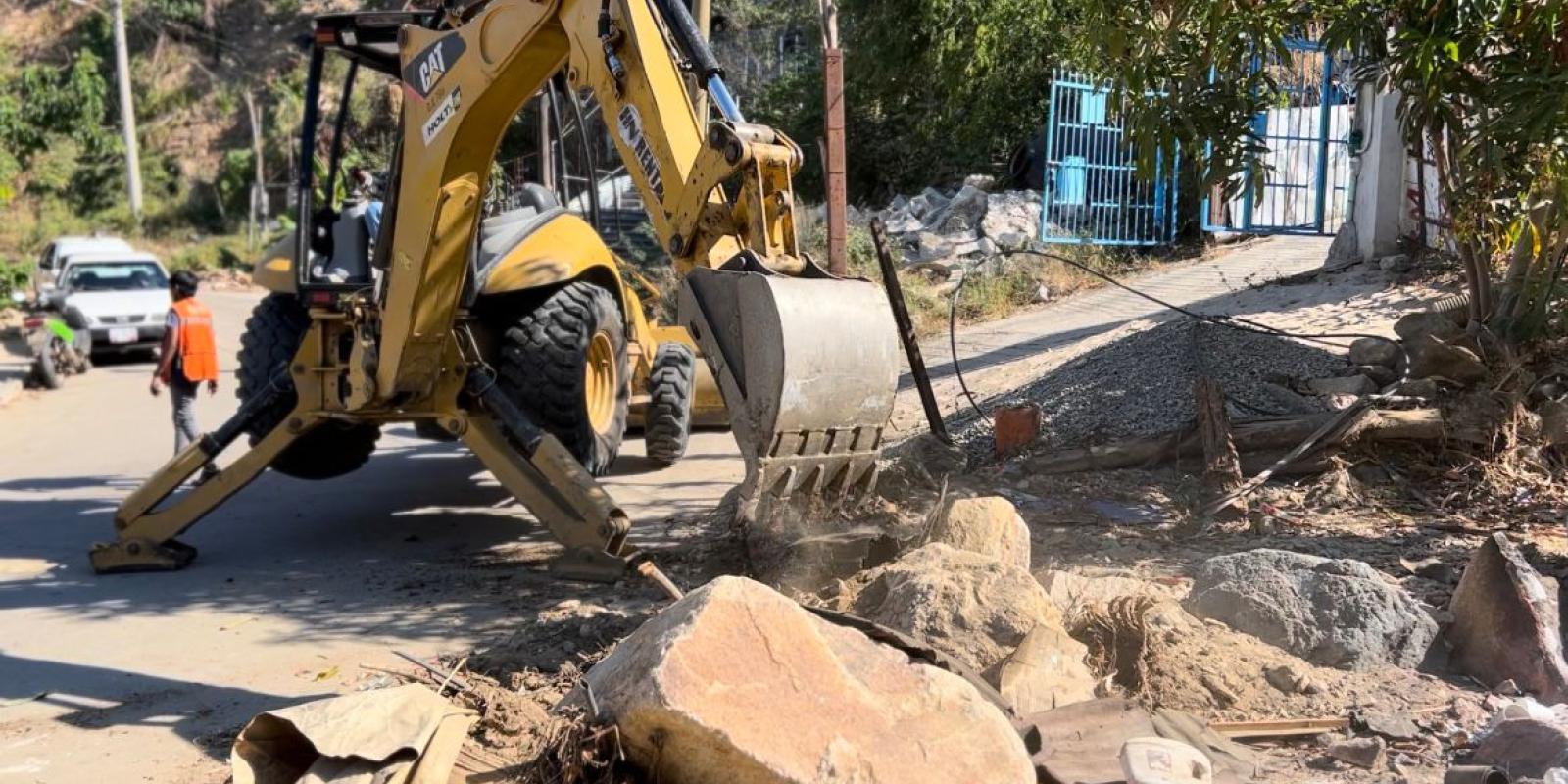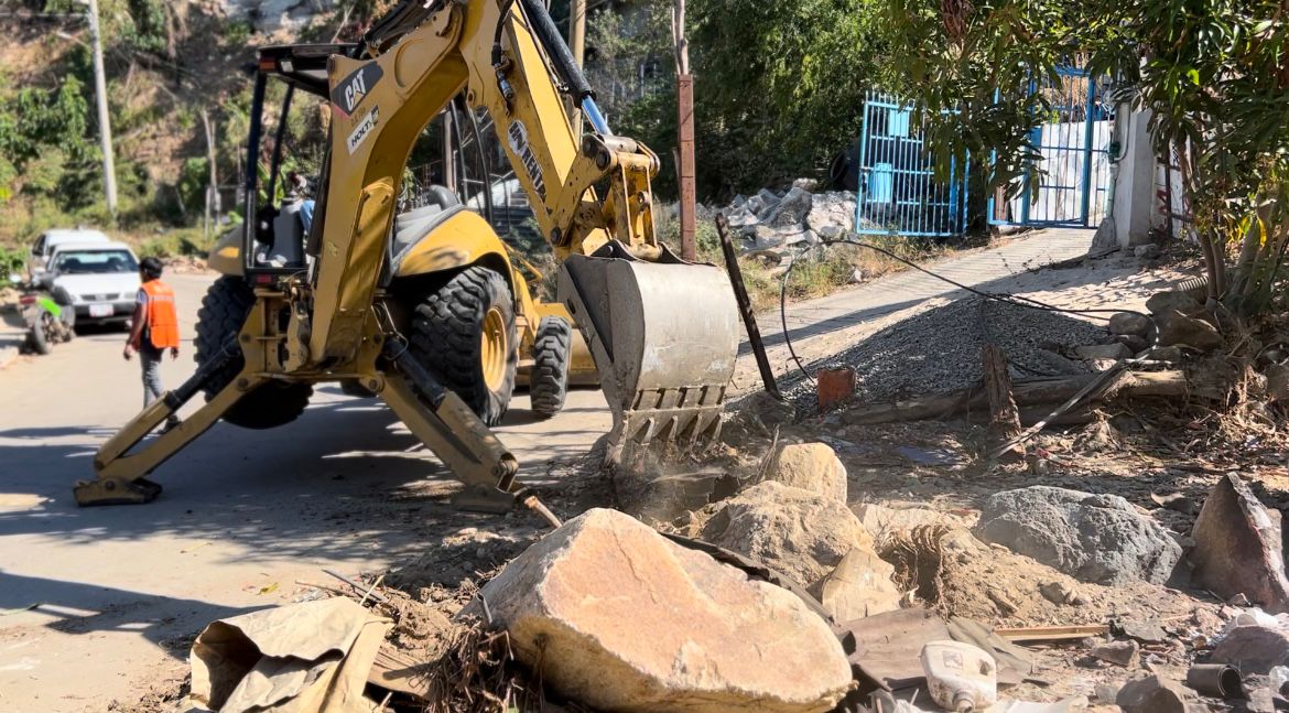 Acapulco, Gro., 14 de febrero de 2024.- Con el objetivo de mejorar el entorno y procurar la seguridad de la población ante la próxima temporada de lluvias, el Gobierno Municipal de Acapulco, continúa con la limpieza de canales pluviales de la ciudad.