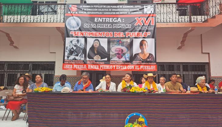 La tarde de este miércoles en la capital del estado, la Asamblea Popular de los Pueblos de Guerrero, entregó la presea popular Sentimientos de la Nación a Micaela Cabañas hija de Lucio Cabañas y a Diana Itzel Hernández hija de Ranferi Hernández.