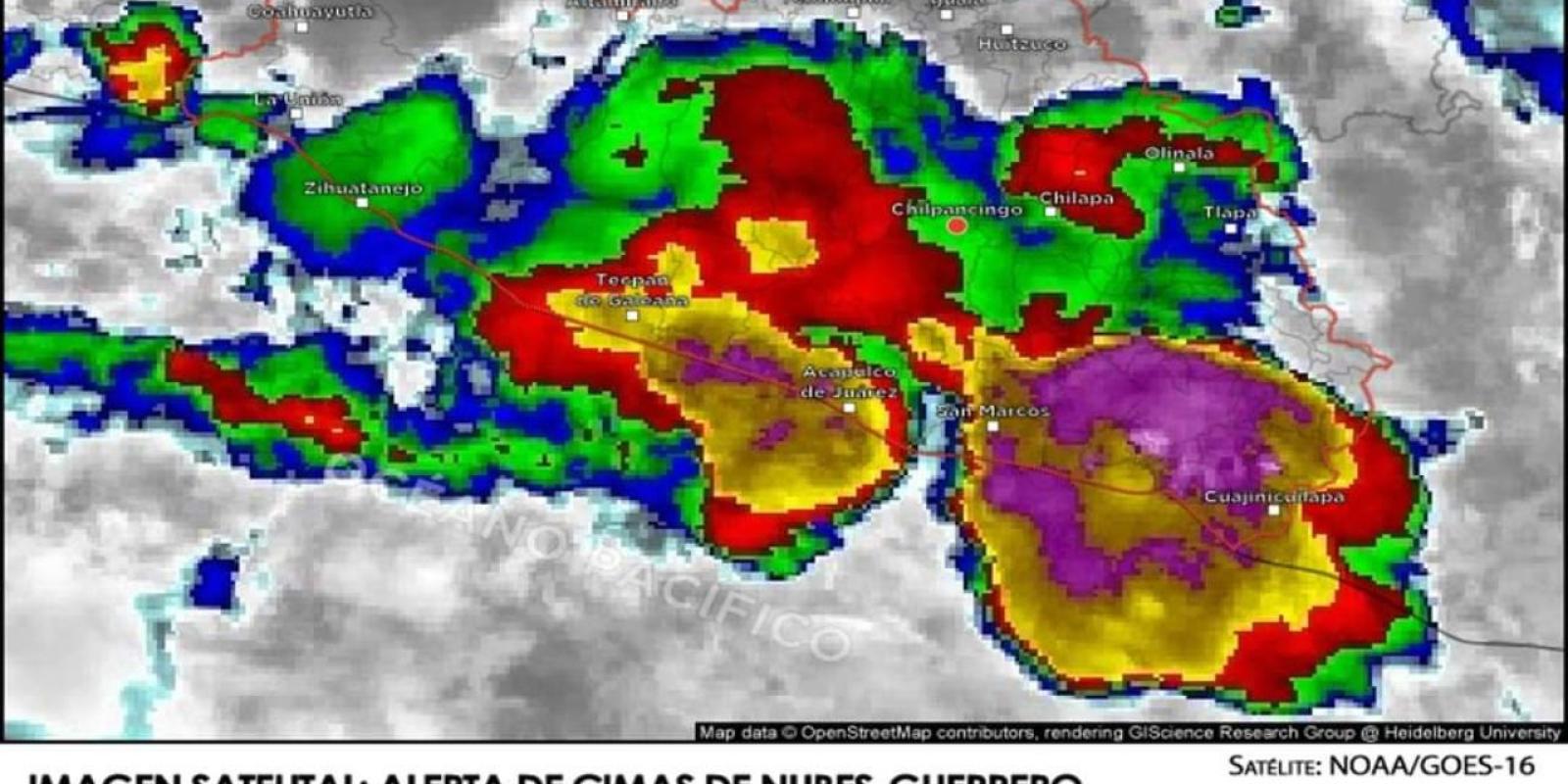 Región Costa Grande: Se registrará cielo nublado con probabilidad de ocurrencia de lluvias fuertes a puntuales muy fuertes. Viento de dirección variable de 10 a 15 km/h. Temperaturas mínimas de 16 a 18 °C.