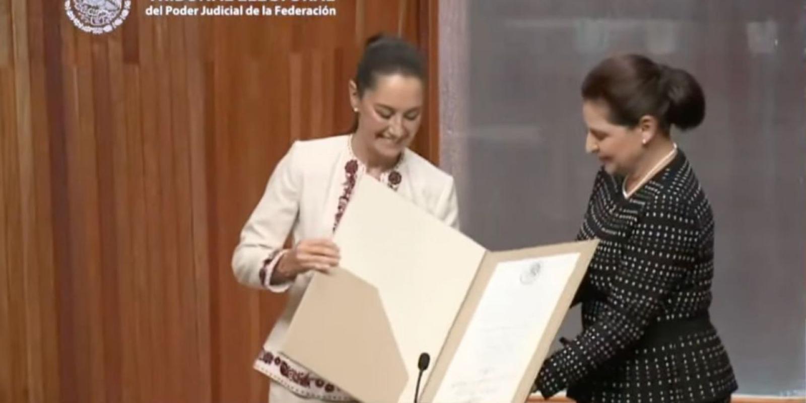 “México ha roto el techo de cristal. Claudia Sheinbaum Pardo, primera mujer en asumir el mandato supremo de nuestra República, después de 200 años y 65 hombre en el cargo”, destacó la titular del Tribunal Electoral, Mónica Aralí Soto Fregoso.
