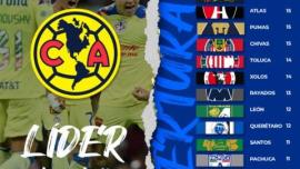 • Tabla general hasta la jornada 10 en la liga MX.